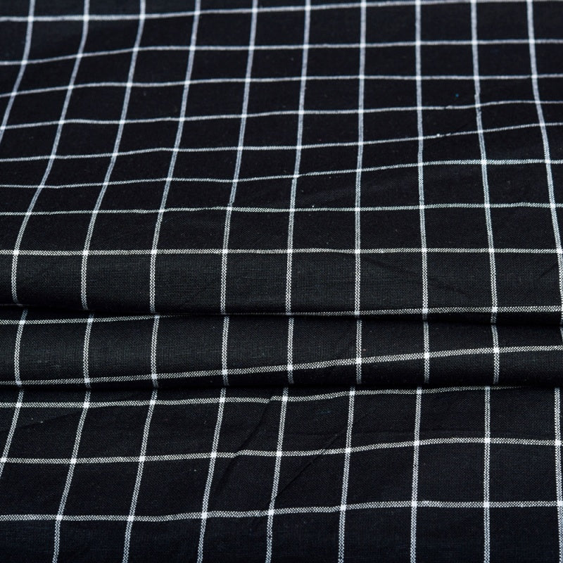 Black White Checks Cotton Handloom Fabric