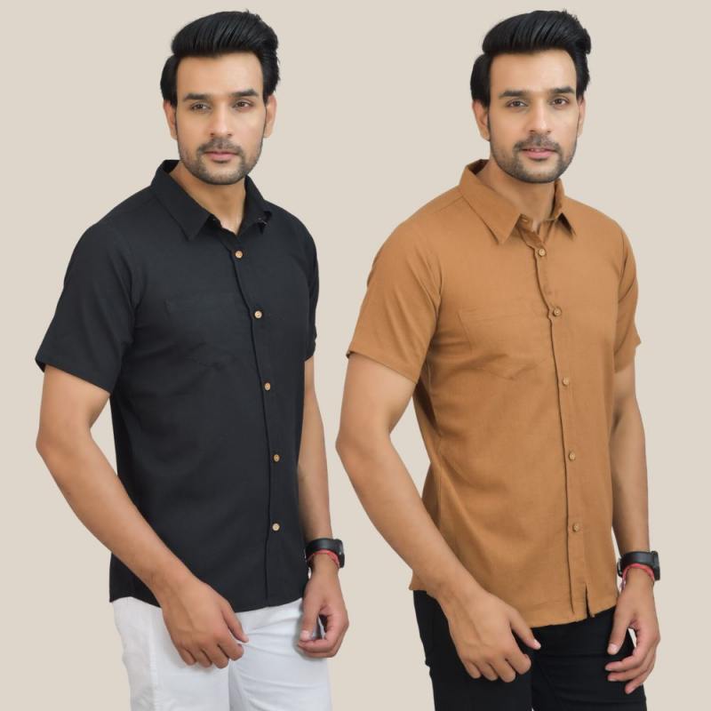 Combo of 2 Black and Brown Solid Cotton Men Shirt