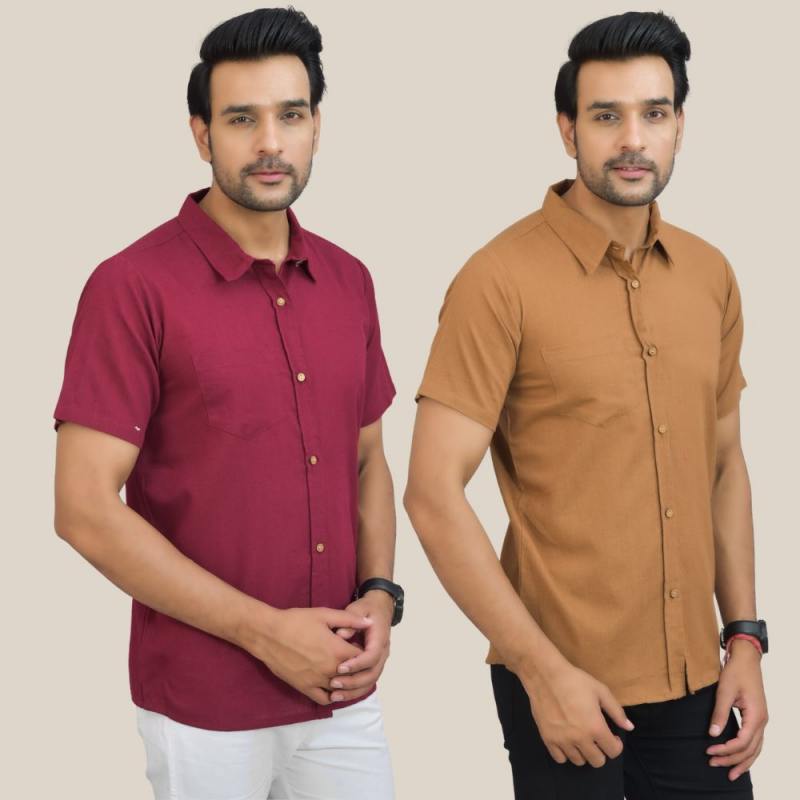 Combo of 2 Maroon and Brown Solid Cotton Men Shirt-25426