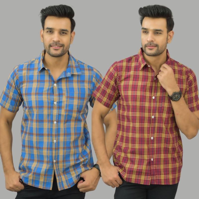 Combo of 2 Men Cotton Checks Shirts Red and Blue-25541