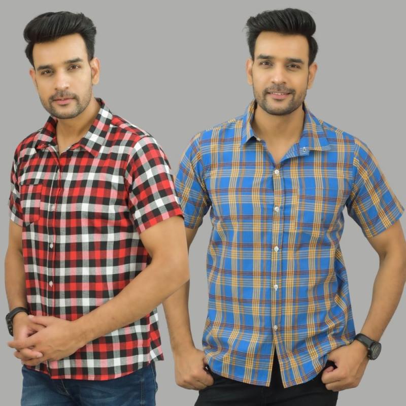 Combo of 2 Men Cotton Checks Shirts Red and Blue-25540