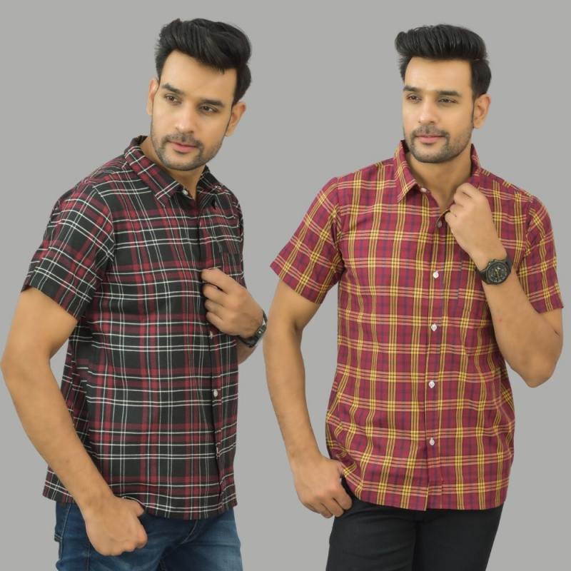 Combo of 2 Men Cotton Checks Shirts Red and Maroon