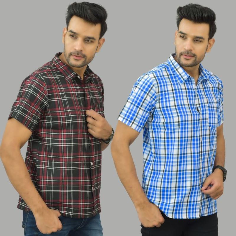COMBO OF 2 MEN COTTON CHECKS SHIRTS WHITE AND MAROON