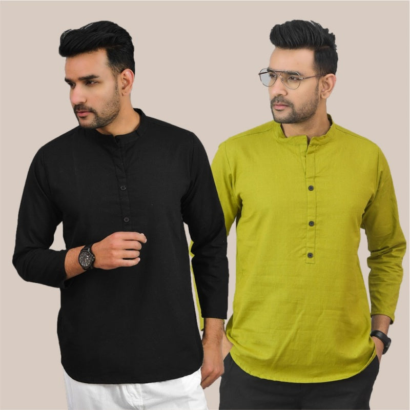 Combo of 2 Men Kurtas Solid Cotton Flax