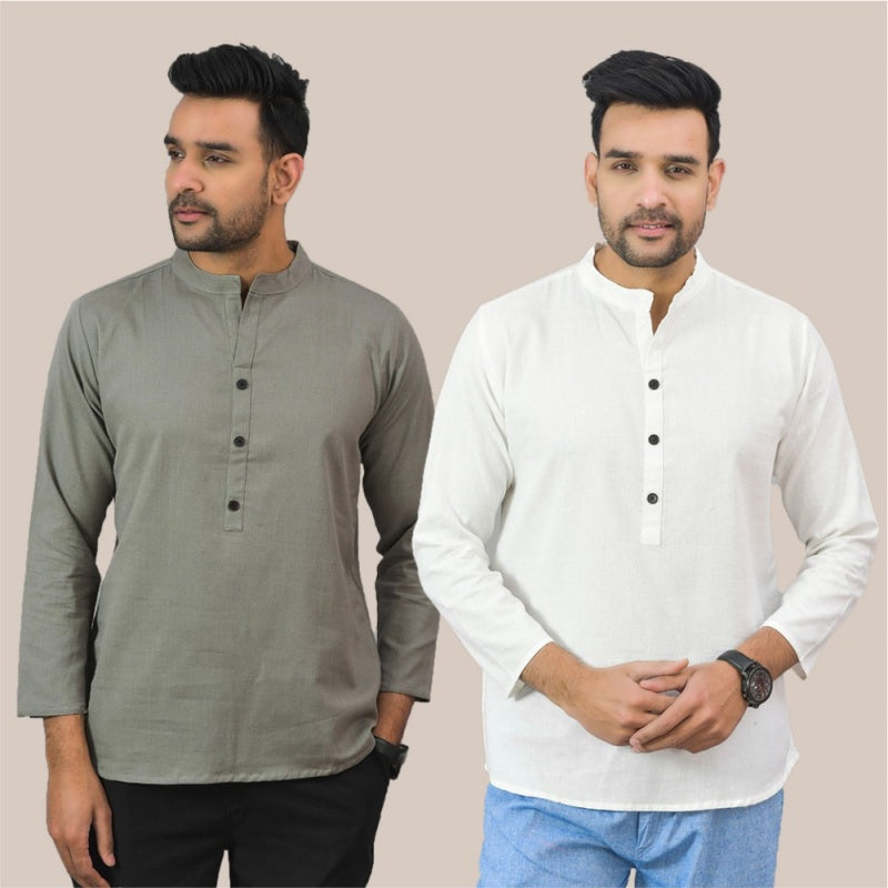 Combo of 2 Men Kurtas Solid Cotton Flax