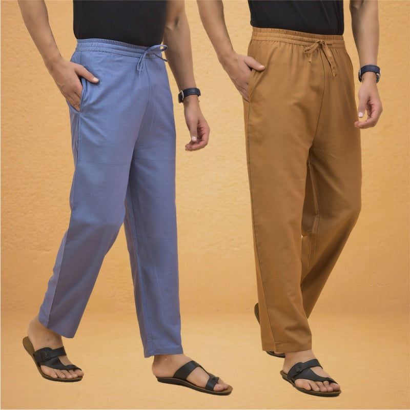 Combo of 2 Men Solid Cotton Flex Pant Sky Blue Brown