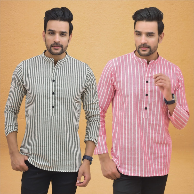 Combo of 2 Men Stripe Cotton Handloom Kurta Pink White
