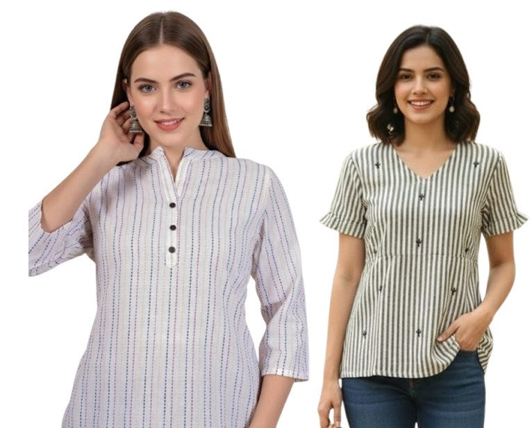 Combo of 2 WHITE And BEIGE Cotton Flax Women Top