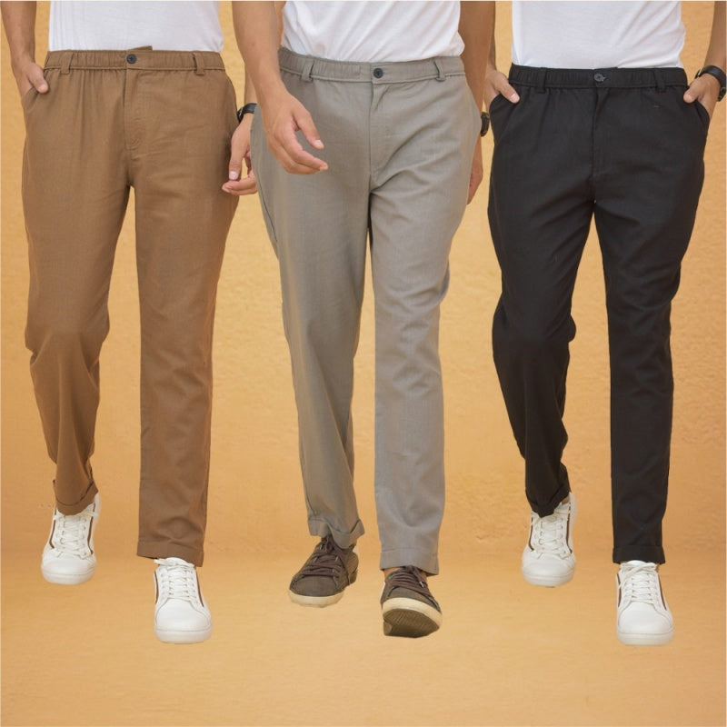 Combo of 3 Gray Brown and Black Cotton Regular Trouser Pants-42483