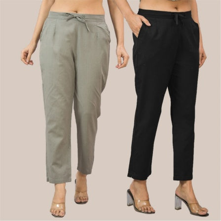 Combo of 2 Gray and Black Cotton Flax Women Trouser Pant-10328