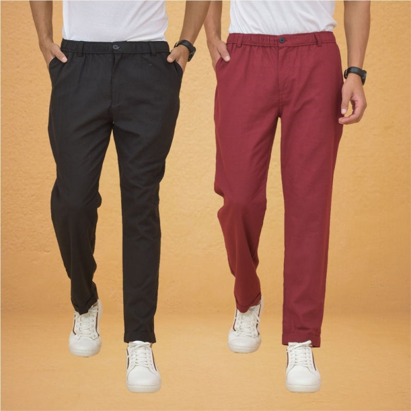 Combo of 2 Maroon and Black Cotton Regular Trousers-42268