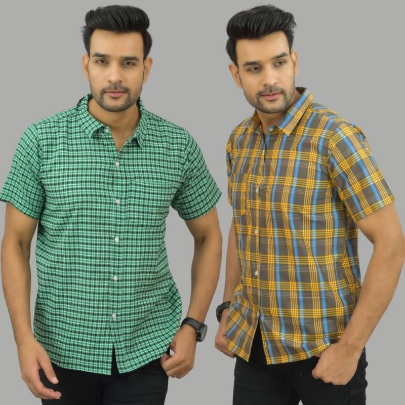 Combo of 2 Men Cotton Checks Shirts Yellow and Green