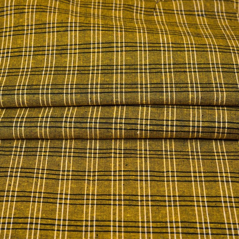 Olive Green Black Triple Line Checks Cotton Handloom Fabric
