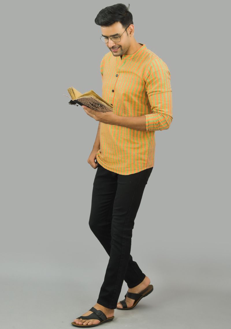 OLIVE GREEN ORANGE STRIPE COTTON HANDLOOM CORD SET-25695
