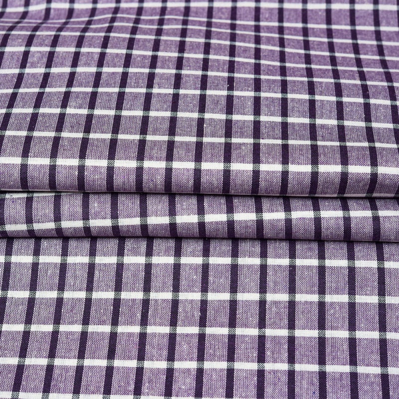 Purple White Checks Cotton Handloom Fabric