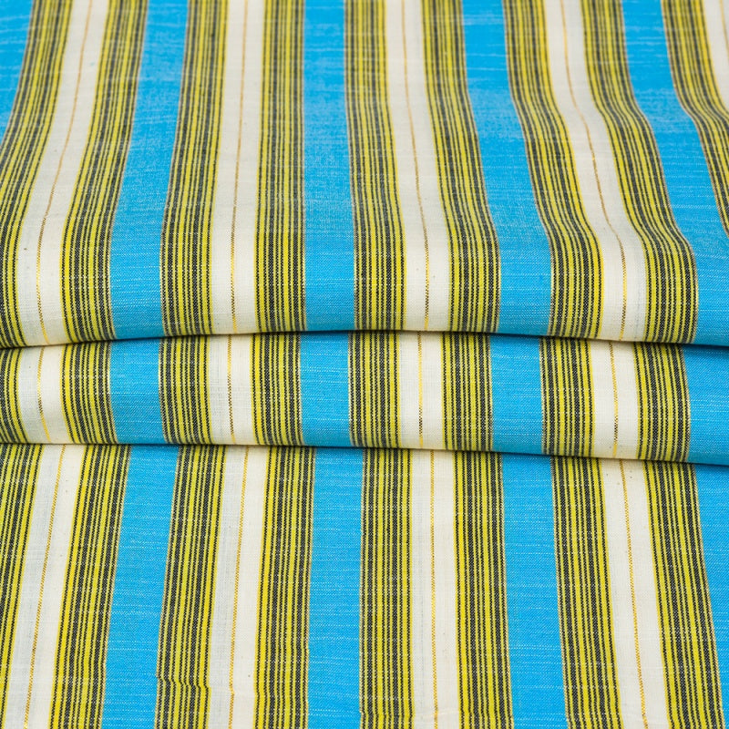 White Cyan and Brown Stripe Cotton Handloom Fabric
